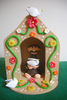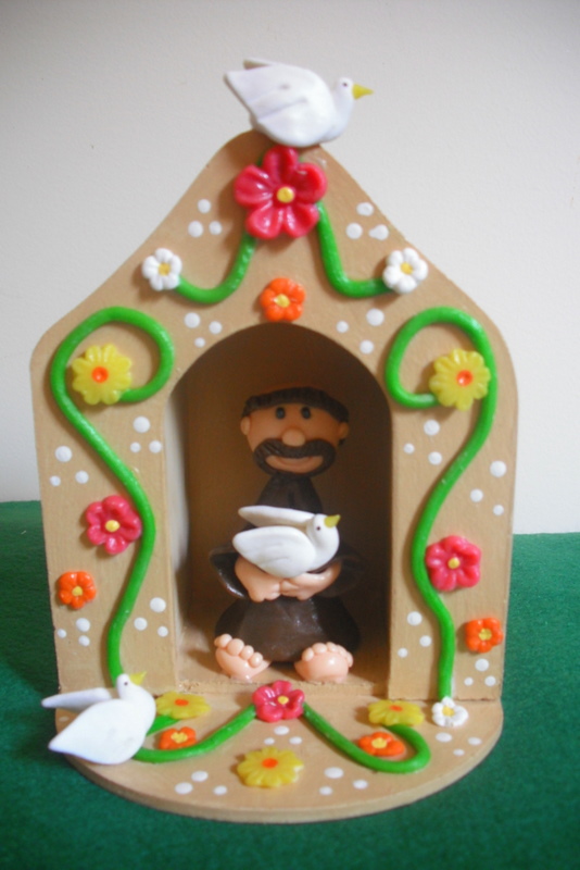 Mini oratório São Francisco em biscuit.