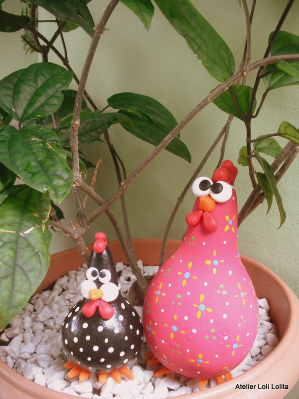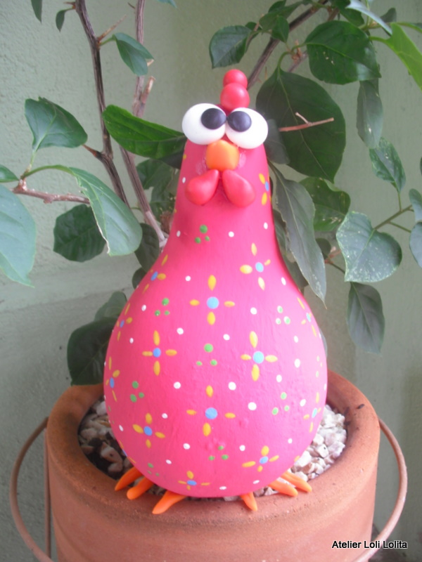 Ontem choveu muito o dia todo então fiquei o dia todo fazendo arte...fiz algumas galinhas de cabaça, é a primeira vez que trabalhei com esse material e gostei muito!