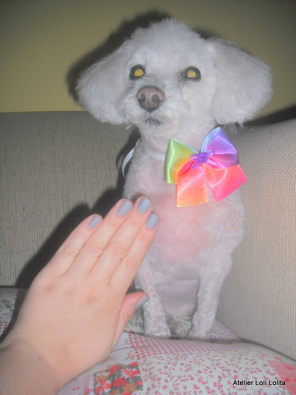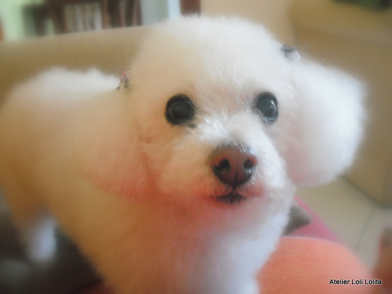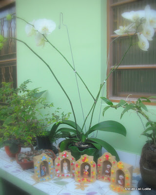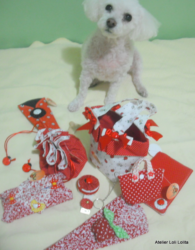 ...porta tesoura, olhem a "maçãzinha"! E olhem a cara de "aparecida" da Lolita! Juro que foi ela quem quis ficar perto dos mimos!